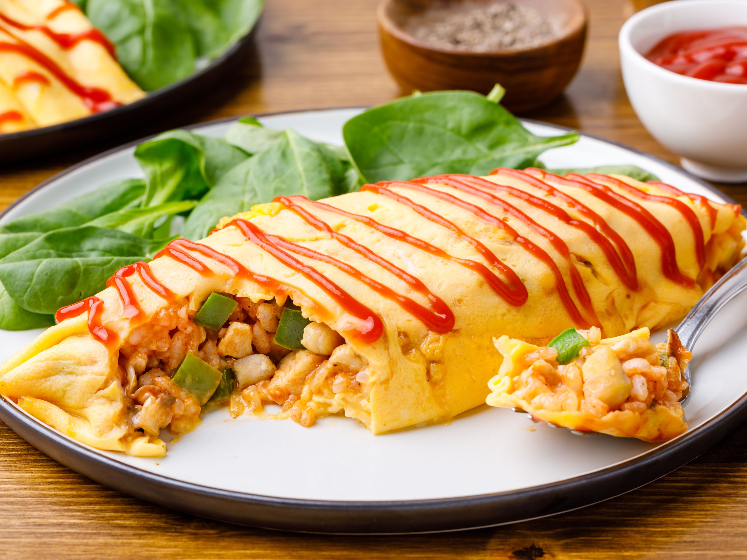 (Stegt jasminris med special Koreansk krydderier, grøntsager, kylling/oks stykker, servere med æg på)